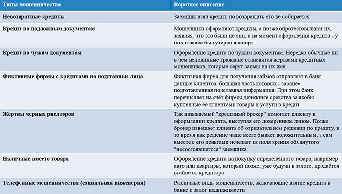 Распространенные типы мошенничества в кредитной сфере
